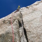 Siamo stati nuovamente zona Monte Bianco, salendo al DENTE DEL GIGANTE, per la via Burgasser aperta nel 1935. Molti chiodi sulla via. Inizialmente si faceva in artificiale, molto faticosa (siamo a 4000 m.). Attualmente si può fare quasi tutta in libera, con difficoltà max 6c+/7a. Via molto bella e panoramica. Calate in doppia sulla via, molto aeree. Siamo poi stati al Corno Stella, per salire la via BARONE RAMPANTE (6b max): anche questa via storica è molto bella, con roccia eccezionale. Calate sulla via molto veloci.